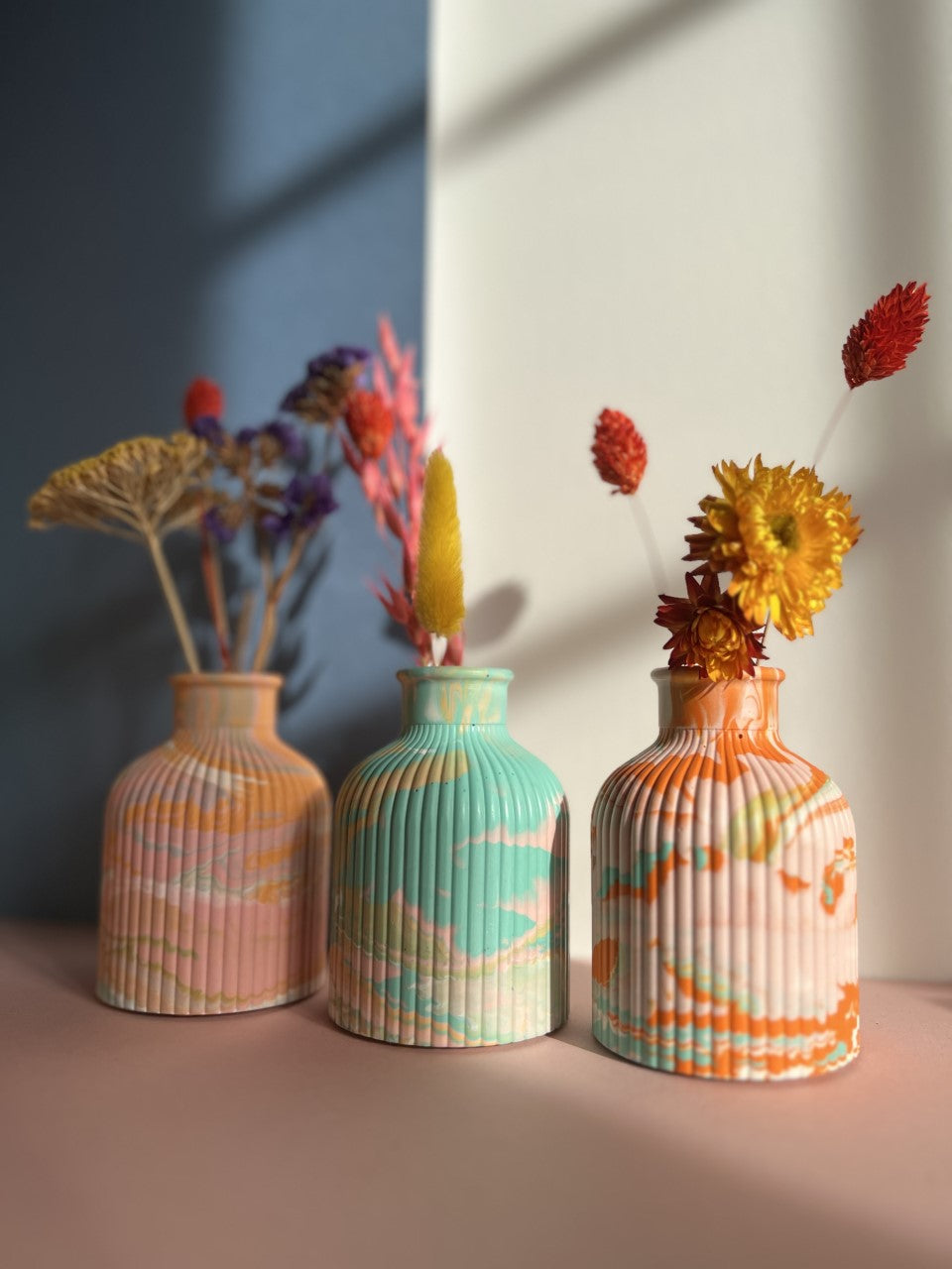 Bits of Colour Marbled Bud Vase, using my favourite colours to craft a one-of-a-kind vase every time. Behold the marbling effect! Each process displays the colours differently, making each item unique from the next. Take a peek at the picture to see for yourself.